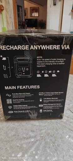 - Charging : mains up to 1000W , solar 200W (XT60), car - AC+solar up to 1200W.