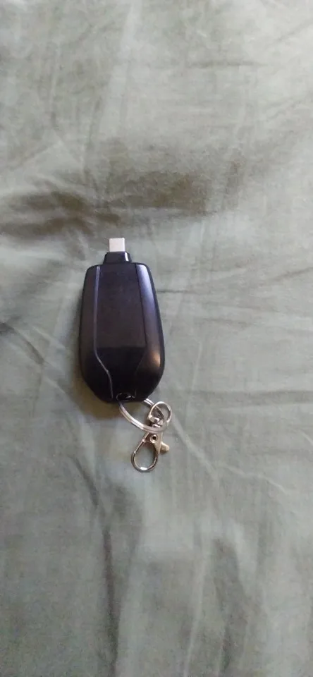 USB-C keychain external battery , 1500 mAh mini powerbank , smartphone emergency battery , 5 W , EDC , Black .
